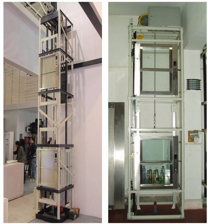 传菜机多用于宾馆,酒店,饭店,医院,部队,学校,等地的厨房内部,多是用来楼上楼下的传送菜盘,人们都称为传菜梯,中国质量监督检查总局条文指定的名词则还是叫做杂物电梯,他并没有脱离出来。说道杂物电梯,我们就再提一句,杂物电梯又称为传菜电梯,食梯,餐梯或多用杂物电梯,是用于8层一下的固定式升降机器,且禁止人员入内。