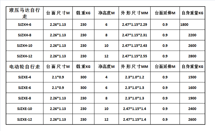 产品简介:自行走式升降机具有自动行走功能,能够在不同工作状态下,不需外接电源,不需人工牵引,移动灵活、操作方便、升降自如,只需一人便可完成前进、后退、转向、快、慢速行走和上下等动作,省工、省力。